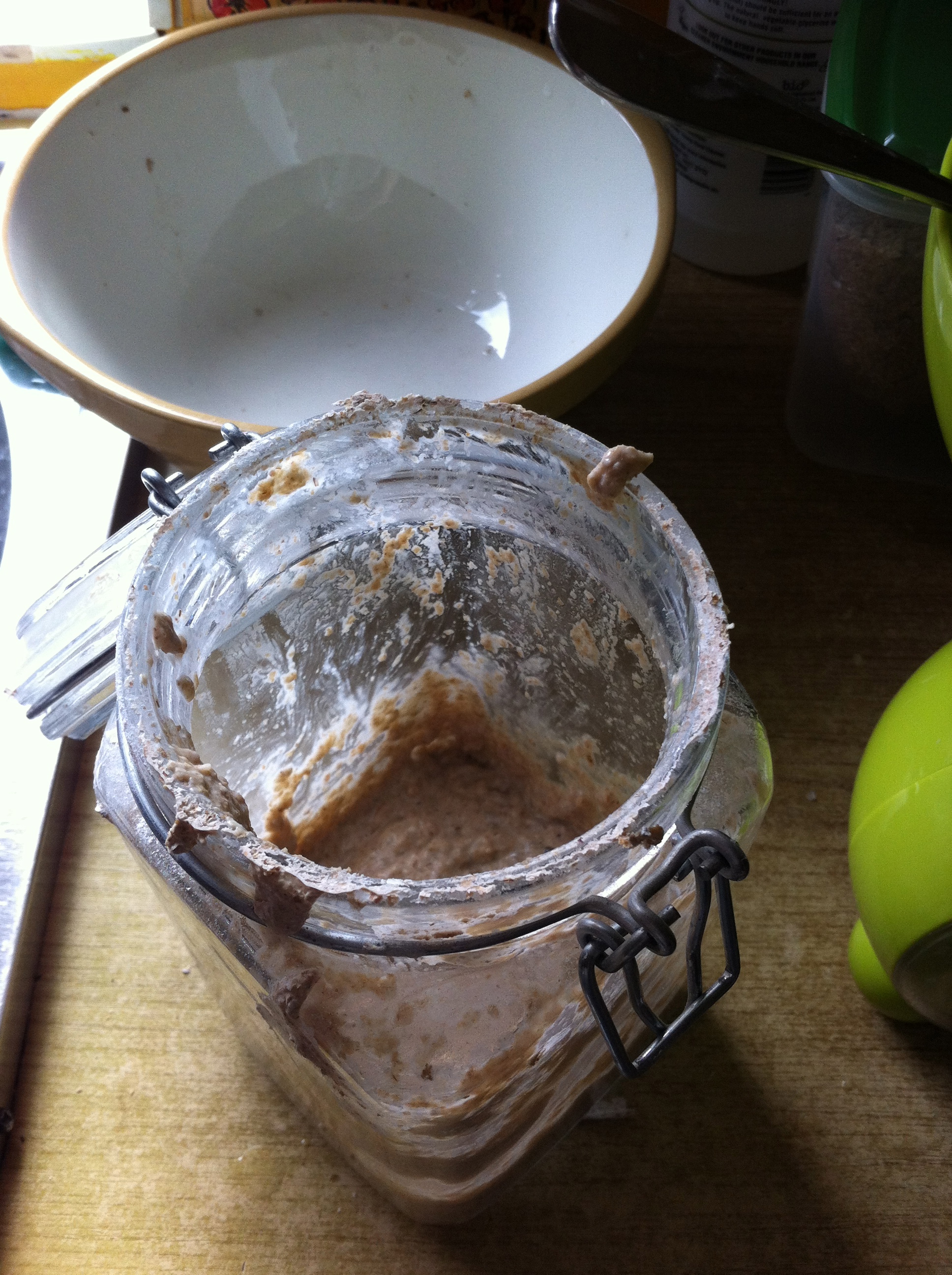 By way of excuse and explanation, I’ve been getting ridiculous, bent-double, Ministry of Silly Walks stomach cramps (in fact, for about 3 miles solid along the Stank between Hampton Bishop and Mordiford the other day). Seemingly my metabolism is not cut out for surviving without some form of starchy carbohydrate. The last performance, being vegetarian and dairy allergic (I thought), I staved off total starvation by allowing myself flour locally milled from a local wheat grower (even though they’d run out of their own and were actually milling grain from Doves Farm in Hungerford, as I explained at the time). This time, thinking that eating both meat and dairy would give me more than enough variety and calories to survive on, I haven’t allowed myself flour. So, no sourdough, no mumpets and really, no complex carbohydrates. A recipe for disaster.