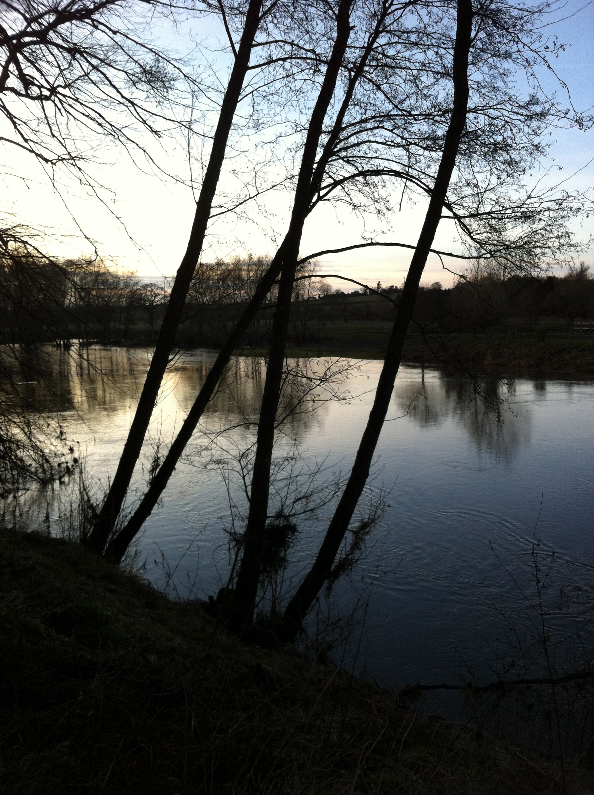 The sun is setting as I follow the Wye back. And, as I pass the Falcon a couple of miles from Caplor, there’s a wood fire burning outside; dancing fire demons to welcome me home and then, in the glow of my headtorch, the white face of a Herefordshire bull.