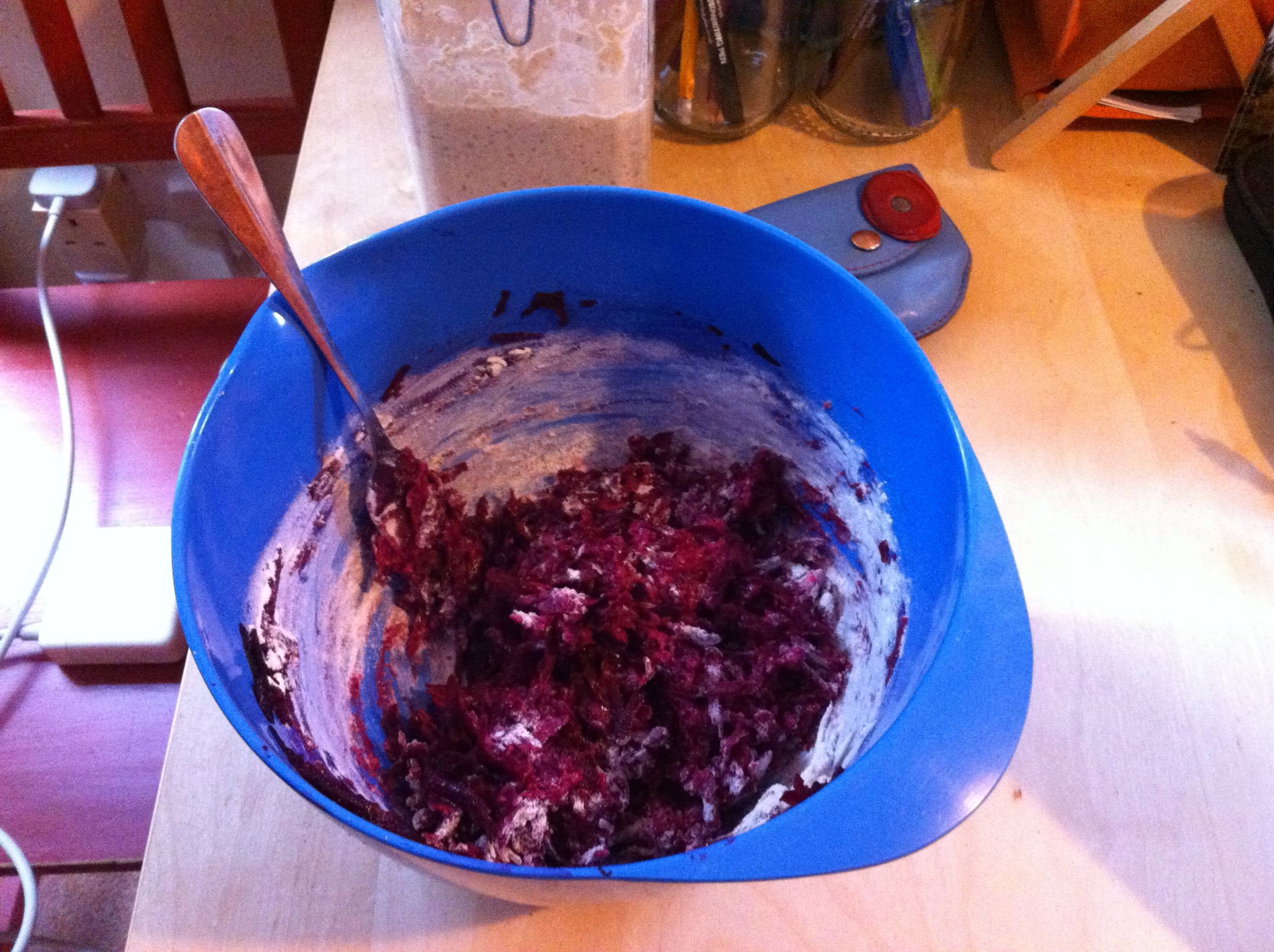 1. Peel and grate the beetroot (save the peelings for your eats-anything horse or compost bin)