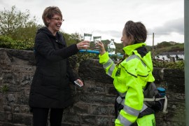 This five day, 60 mile walk followed the mains water pipeline network from the Bontgoch water treatment works to sea at the Ynyslas visitor centre. It was commissioned by the Cymerau case study of the AHRC Hydrocitizenship project. Wearing hi-vis work wear and carrying 2 m of blue water pipe, a bottle of water and two glasses, I asked every person I met to make a promise of ‘one thing you would do to ‘treat’ water differently in future’ and then we drank a toast together. The piece was a gentle encouragement to perceive the ‘vitality’ of water – as something worthy of being ‘treated’ thoughtfully – and thus admitting the agency of the more-than-human into everyday routine.